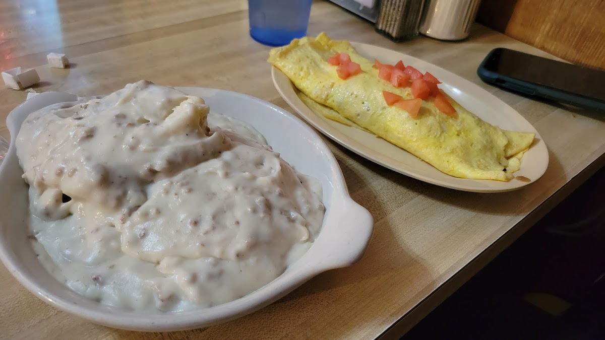 This is a beautiful family restaurant, breakfast all day. My girls loved the pancakes and French toast, and I had a great sandwich (the nightmare, picture included)! Definitely recommend, just about a mile off the interstate!