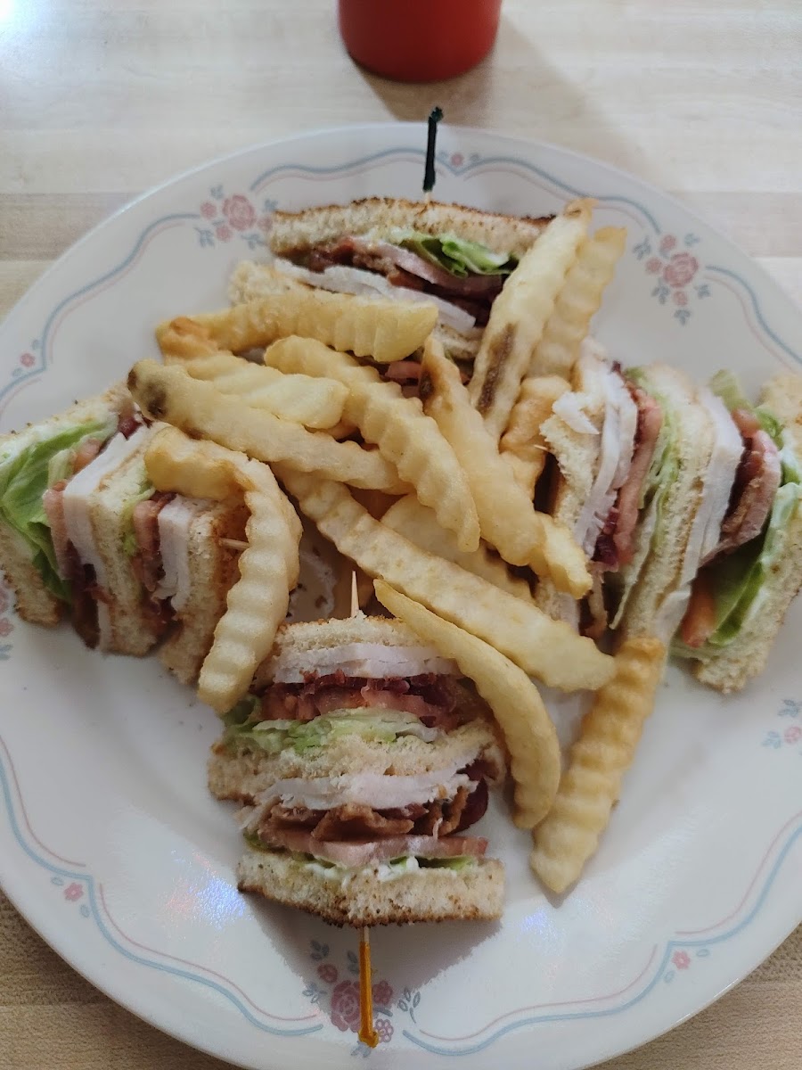 First time here. We were excited to find a small family style restaurant near our location. Good selection of menu items. Good variety of dessert options. Prices were good also. We ordered the Open face turkey and mashed potatoes meal and the Turkey Bacon Club Sandwich. The food was good and didn't take very long to come out after ordering. Our waitress was attentive even with being the only one. We would go back again when in the area.